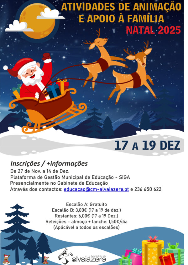 🎨🎄 𝗜𝗻𝘀𝗰𝗿𝗶𝗰̧𝗼̃𝗲𝘀 𝗔𝗯𝗲𝗿𝘁𝗮𝘀 𝗽𝗮𝗿𝗮 𝗮𝘀 𝗔𝘁𝗶𝘃𝗶𝗱𝗮𝗱𝗲𝘀 𝗱𝗲 𝗔𝗻𝗶𝗺𝗮𝗰̧𝗮̃𝗼 𝗲 𝗔𝗽𝗼𝗶𝗼 𝗮̀ 𝗙𝗮𝗺𝗶́𝗹𝗶𝗮 𝗱𝗲 𝗡𝗮𝘁𝗮𝗹 O Município de Alvaiázere irá dinamizar ...17 a 2025/12/19 -