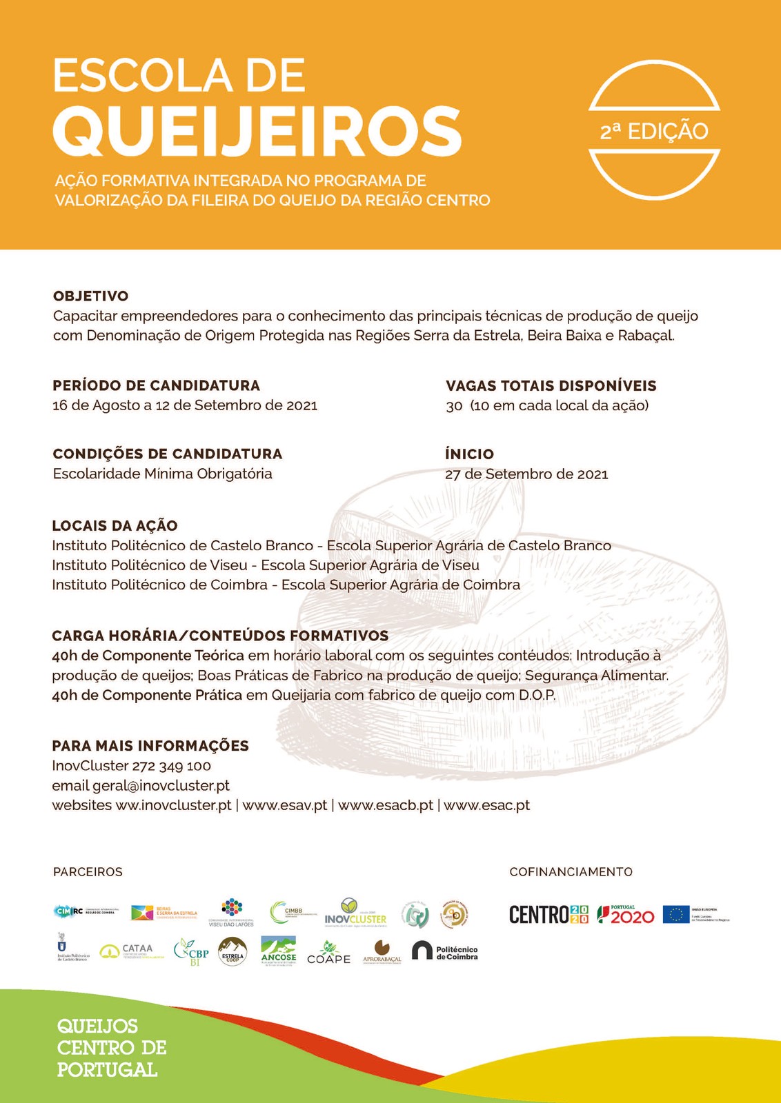 Após o sucesso da primeira edição da “Escola de Queijeiros”, e numa perspetiva de continuidade, o Programa de Valorização da Fileira do Queijo da Região Centro arrancará com uma segunda edição desta atividade formativa, já a partir de dia 27 de setembro de 2021.