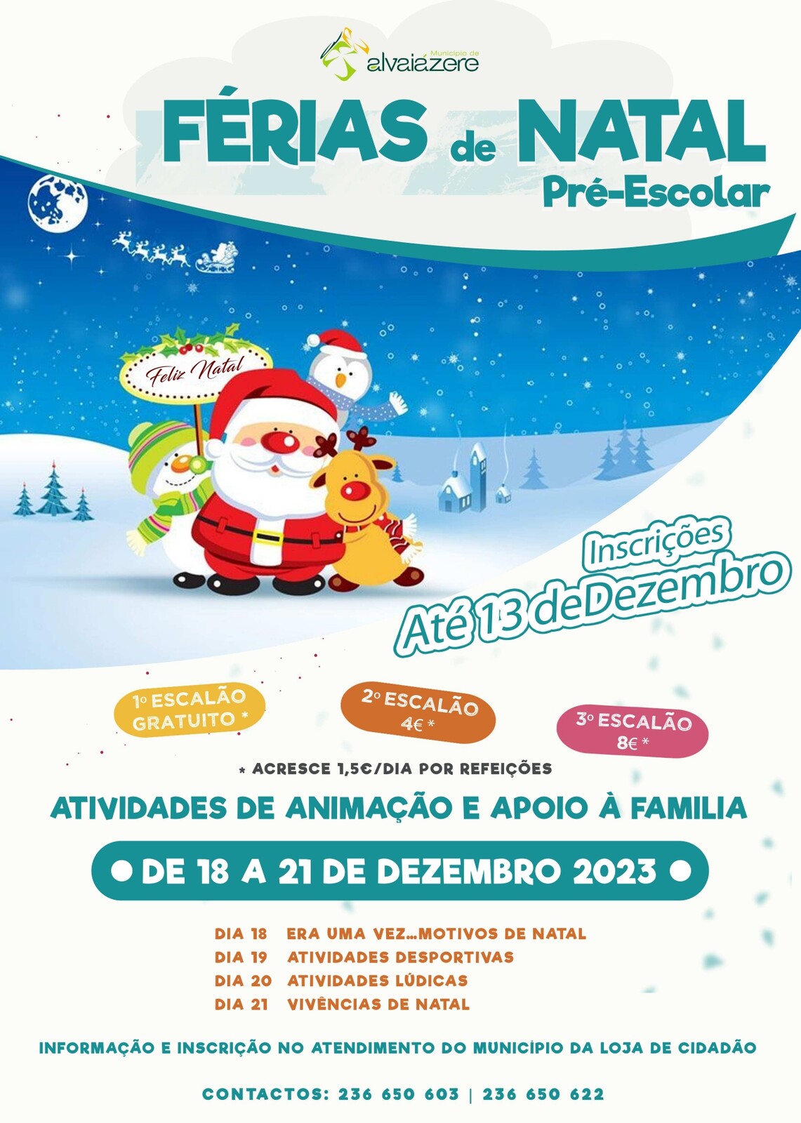 O Município de Alvaiázere irá dinamizar, entre os dias 18 e 21 de dezembro, Atividades de Animação e Apoio à Família destinadas às crianças que frequentam o ensino Pré-Escolar no concelho de Alvaiázere.