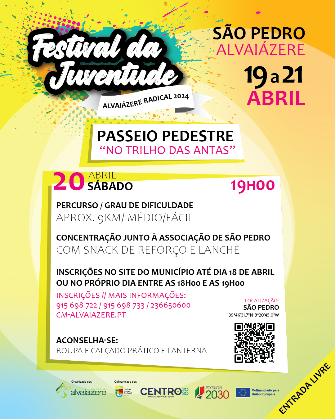 O Município de Alvaiázere vai promover mais uma edição do Festival da Juventude – Alvaiázere Radical 2024, entre os dias 19 e 21 de abril, um evento aguardado com grande expectativa, que promete uma atmosfera vibrante e uma variedade de atividades, na Freguesia de Pussos São Pedro.