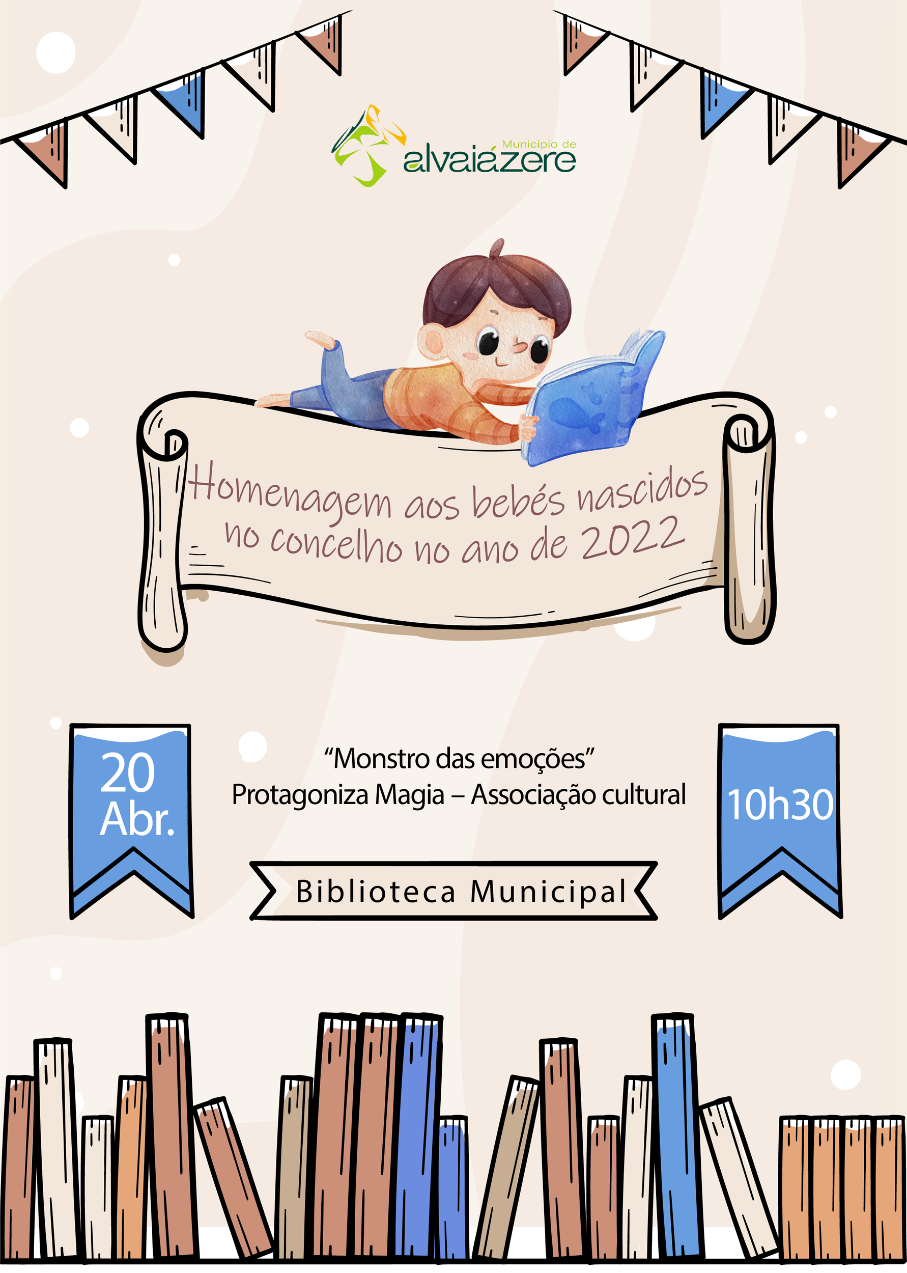 No dia 20 de abril, pelas 10h30, convidamo-lo a si e ao seu bebé a juntar-se a nós para uma ocasião especial: a Homenagem aos bebés nascidos no concelho no ano de 2022, com o momento "Monstro das Emoções". Será uma manhã dedicada aos pequeninos, num ambiente de carinho e ternura.