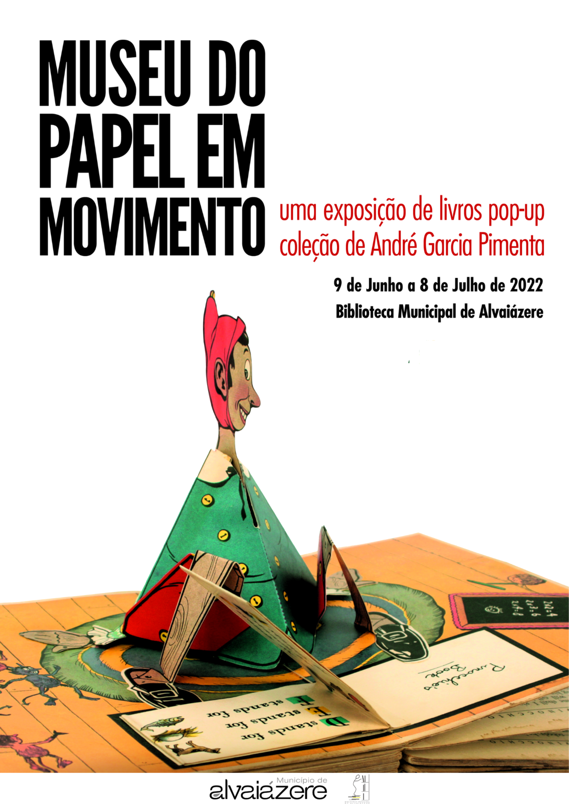 “Museu do papel em movimento”, exposição de livros pop-up que reúne exemplares desde a sua origem no século XIX até à contemporaneidade, mostrando o processo de produção de um pop-up com folhas impressas e os cortantes utilizados na sua fabricação.