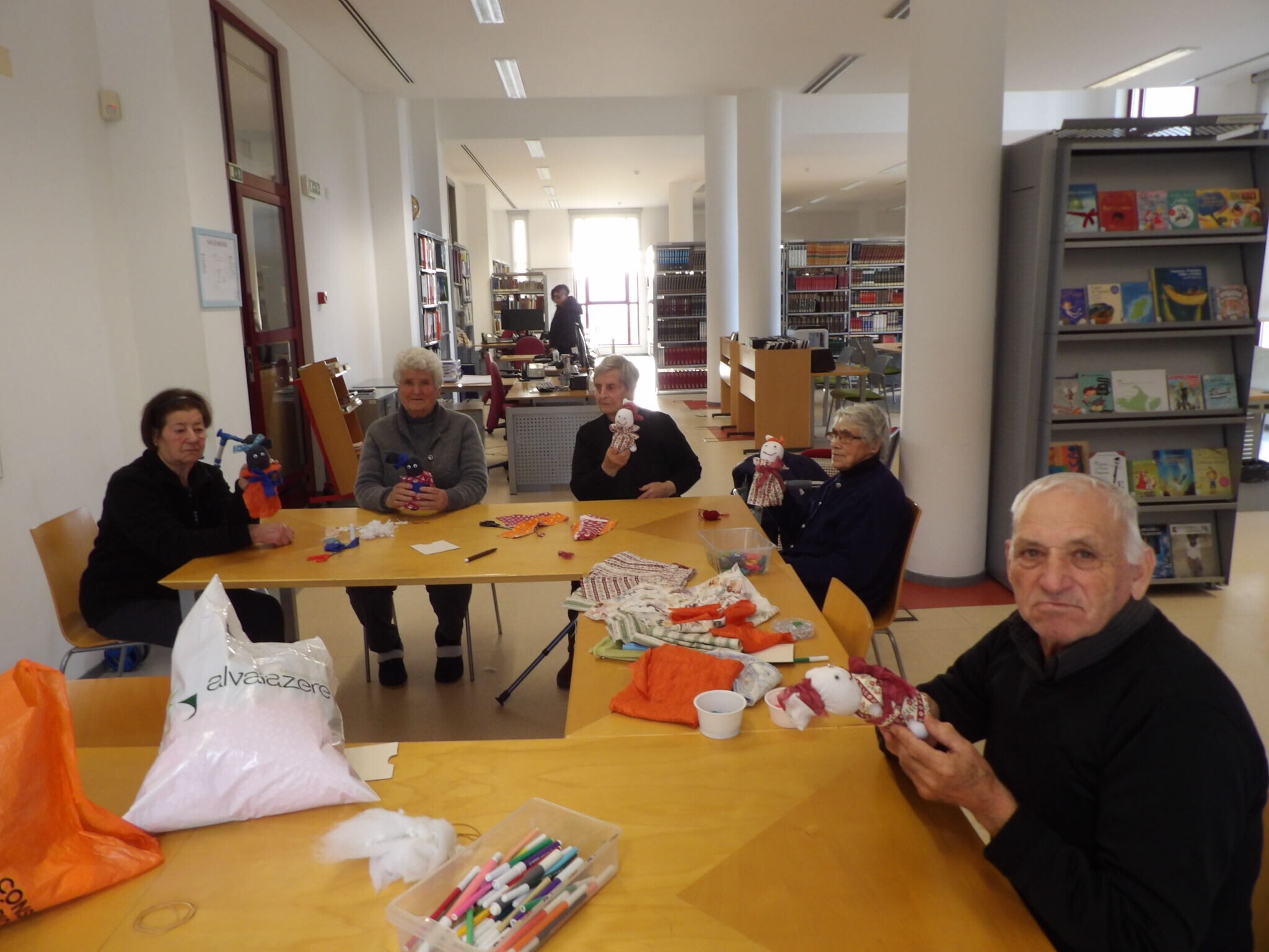 Ainda durante o mês de dezembro, nos dias 17, 19, 26 e 27, a BMA recebeu os utentes das IPSS’S do concelho para uma atividade de elaboração de bonecas, a partir de meias e tecidos, recordando a infância e os brinquedos de antigamente.