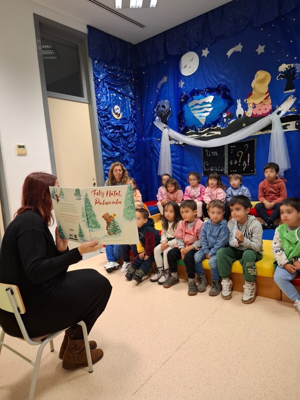 No âmbito do Projeto Educativo da BMA com o tema “Escuta e desafia-te”, os alunos do ensino pré-escolar, nos dias 3, 4, 5, 6 e 10 de dezembro, vieram à BMA participar numa atividade enquadrada no tema “A Arte e o Mundo - Meio Ambiente”, que consistiu na leitura da história “Feliz Natal Pinheirinho” de Jane Chapman e na elaboração de um pinheirinho de Natal a partir de materiais reciclados.