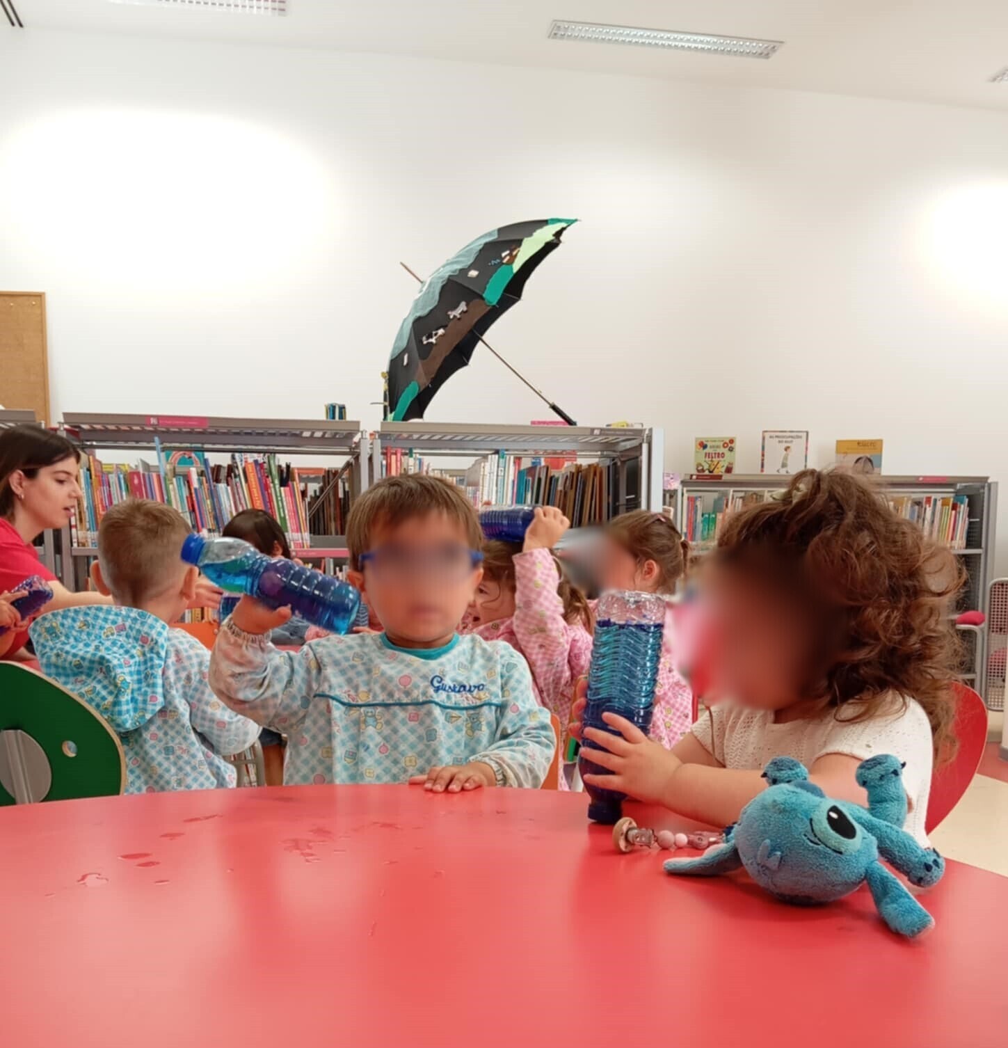 No âmbito da “Hora do Conto”, as crianças escutaram a história “O Peixe-Palhaço, a Anémona e o Grande Recife de Coral”, do livro “A Magia dos Oceanos – Histórias em 5 minutos”, de Gabby Dawnay. Posteriormente, cada criança construiu a sua garrafa sensorial subjacente à descoberta do oceano, com recurso a figuras como a estrela do mar; o cavalo marinho; a concha; o búzio; entre outros.