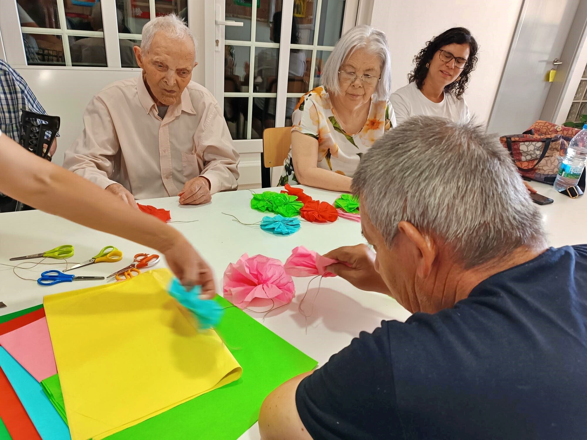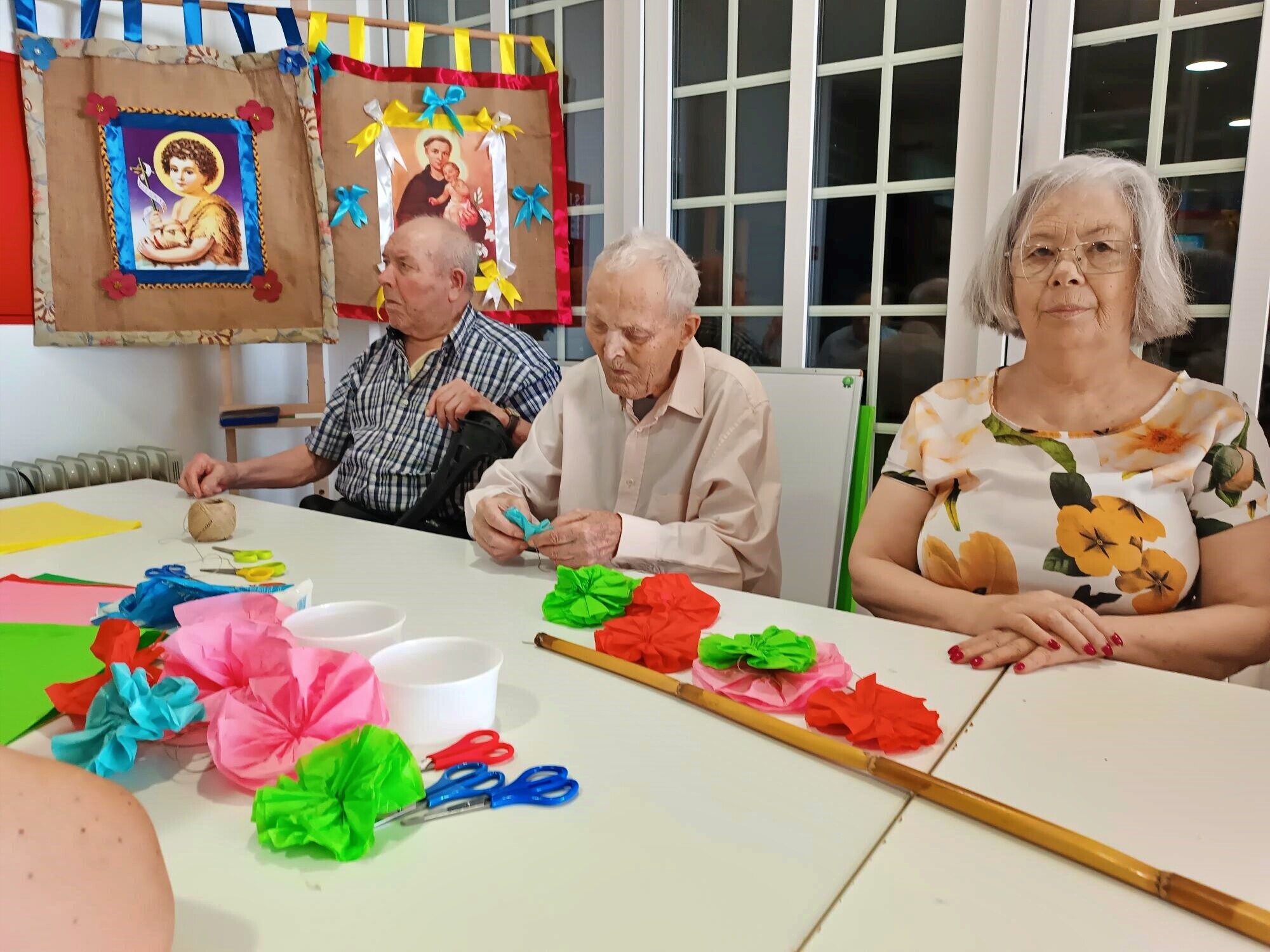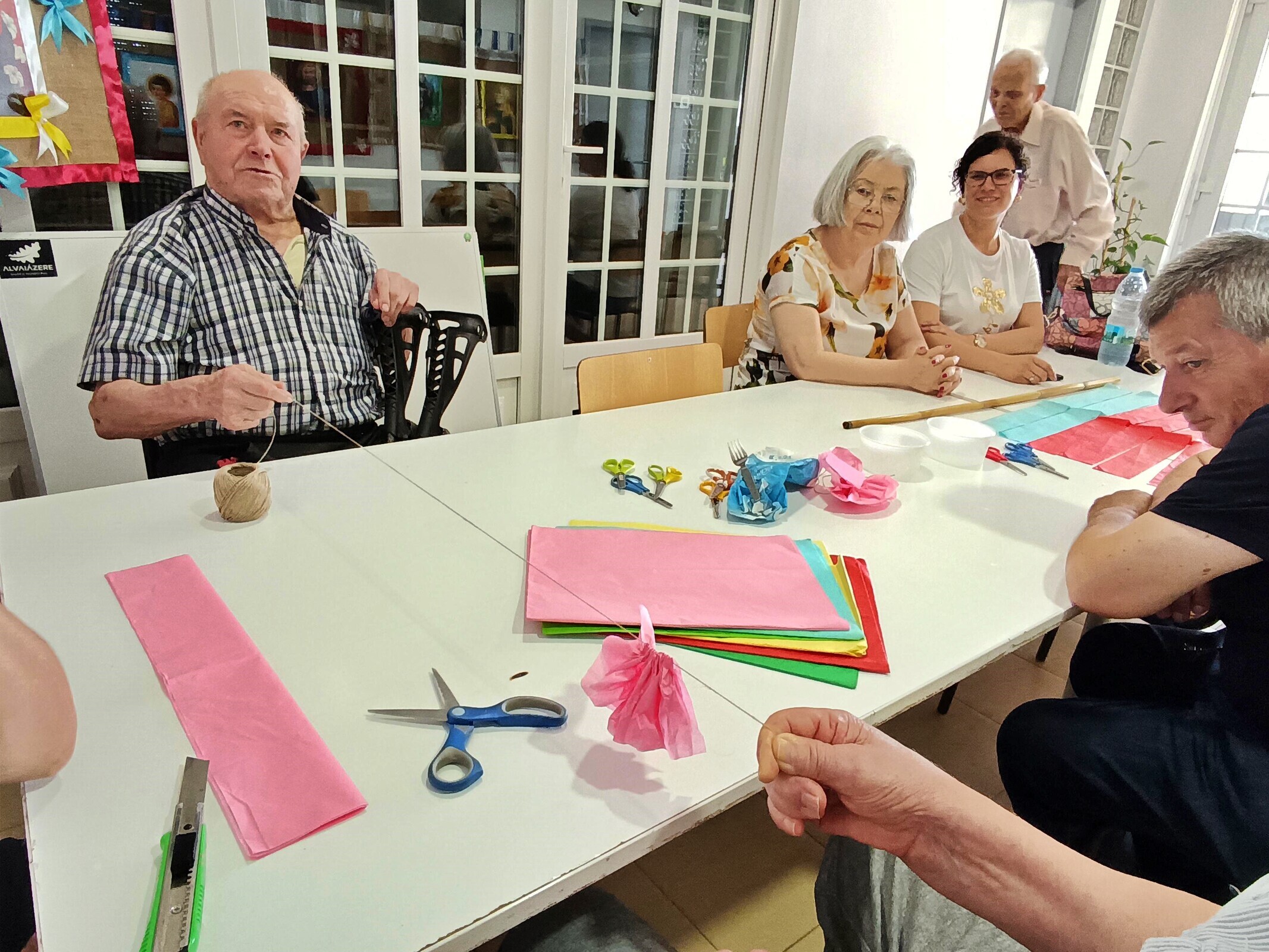 A produção destas flores, tradicionalmente associadas a arraiais, procissões e enfeites festivos, permitiu aos participantes relembrar técnicas tradicionais, partilhar memórias e reviver experiências ligadas às celebrações comunitárias. A atividade decorreu em ambiente de convívio e colaboração, estimulando a criatividade, a partilha de saberes e o bem-estar dos utentes.