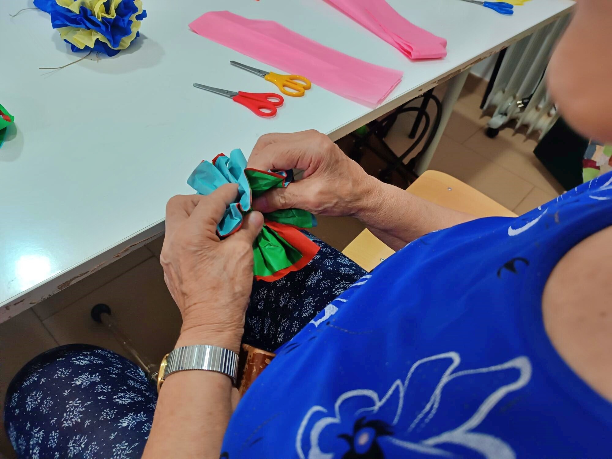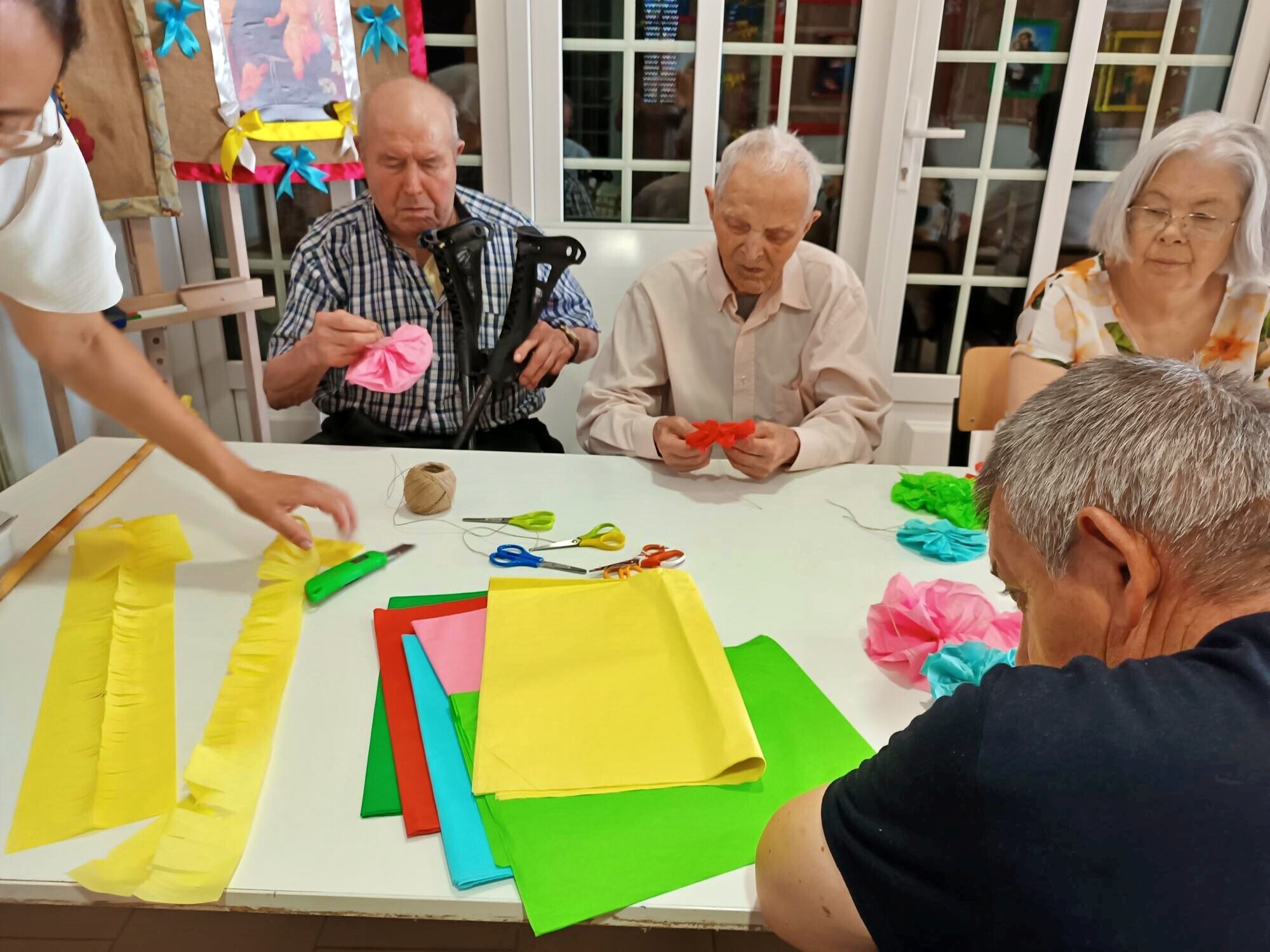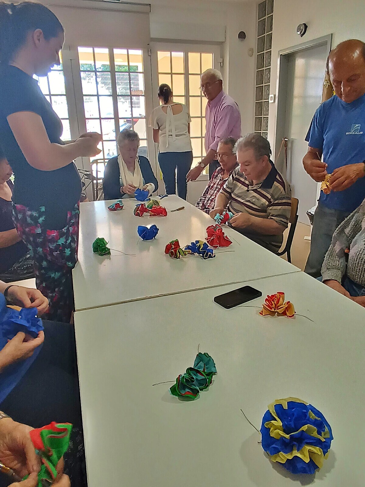 A produção destas flores, tradicionalmente associadas a arraiais, procissões e enfeites festivos, permitiu aos participantes relembrar técnicas tradicionais, partilhar memórias e reviver experiências ligadas às celebrações comunitárias. A atividade decorreu em ambiente de convívio e colaboração, estimulando a criatividade, a partilha de saberes e o bem-estar dos utentes.