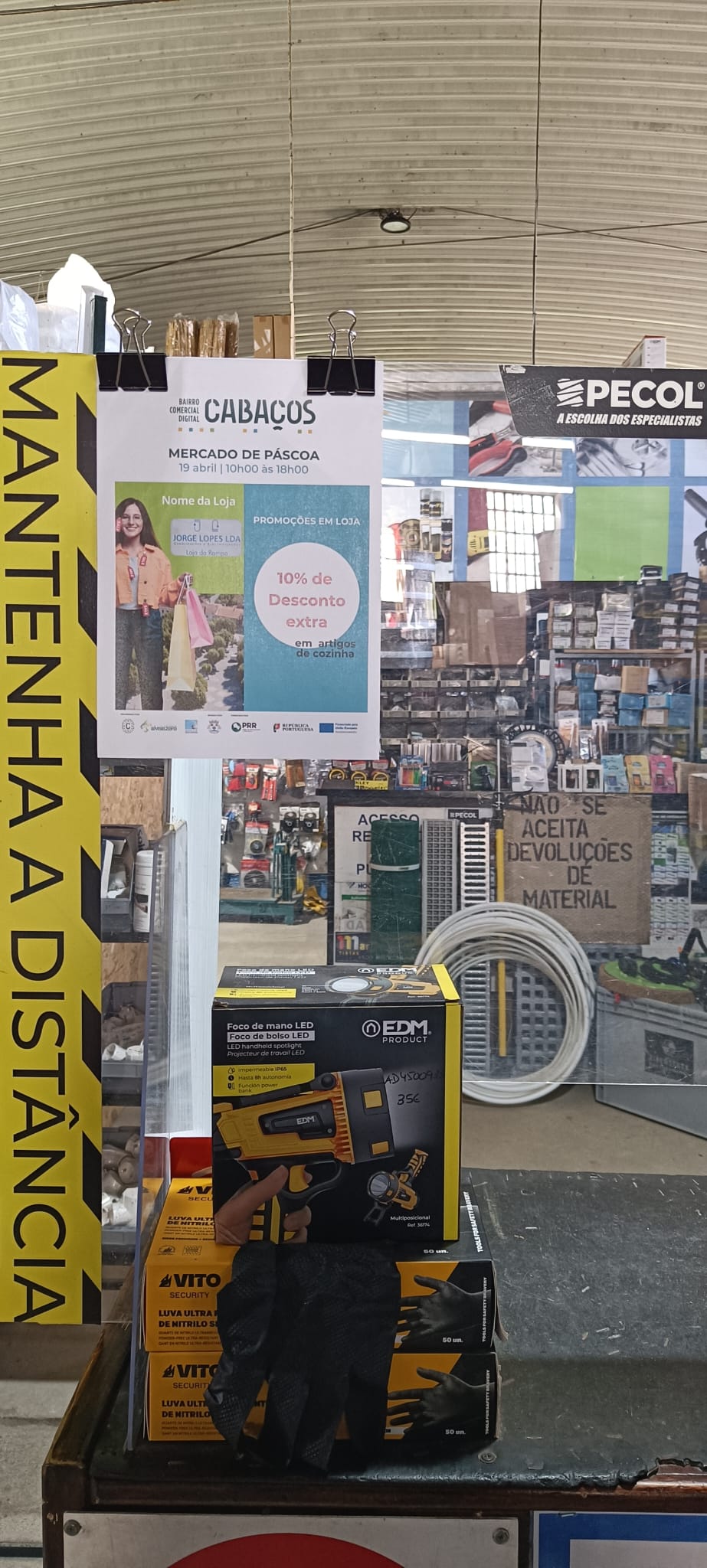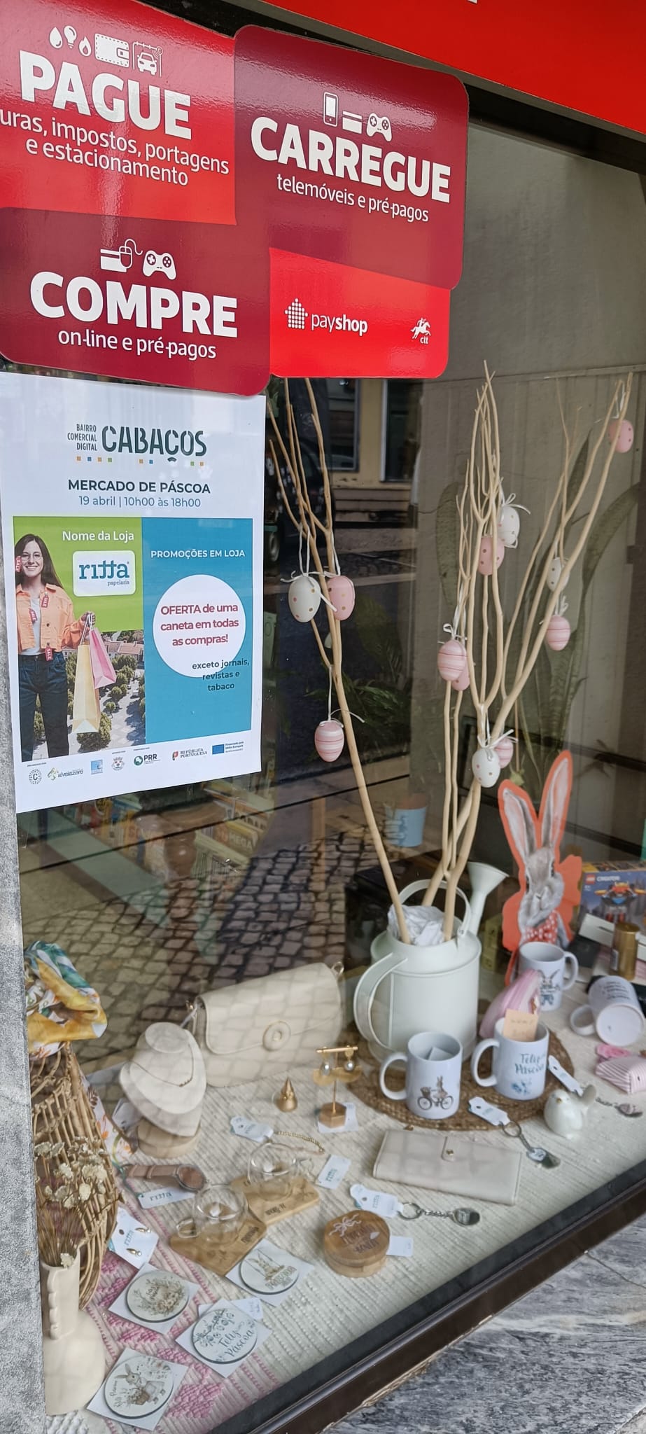 No âmbito do projeto “Bairro Comercial Digital de Cabaços”, realizou-se no passado sábado, dia 19 de abril, o “Mercado de Páscoa”, uma iniciativa que contou com a participação ativa do comércio local. Neste dia, os estabelecimentos aderentes disponibilizaram descontos especiais alusivos à época pascal, incentivando as compras no comércio tradicional.