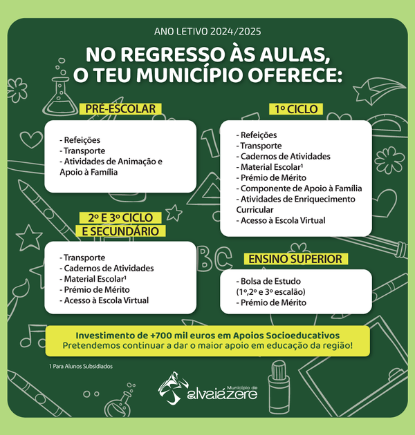 O Município de Alvaiázere apresenta um conjunto abrangente de apoios socioeducativos para o ano ...05 Agosto 2024 -