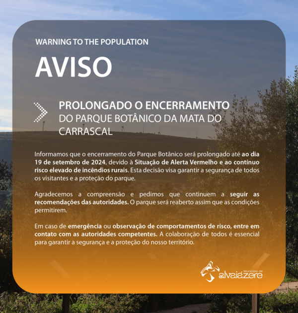Informamos que o encerramento do Parque Botânico será prolongado até ao dia 19 de setembro de ...17 Setembro 2024 -